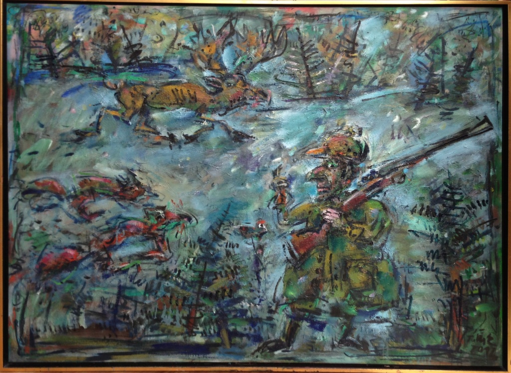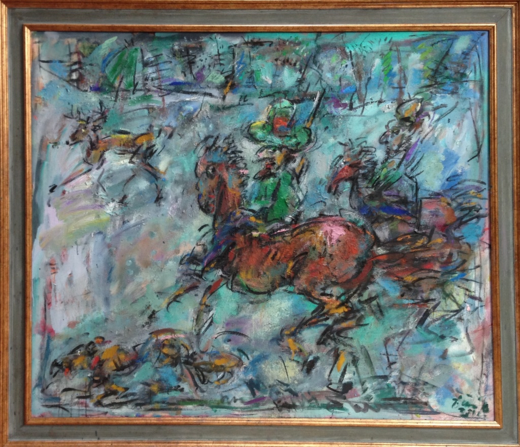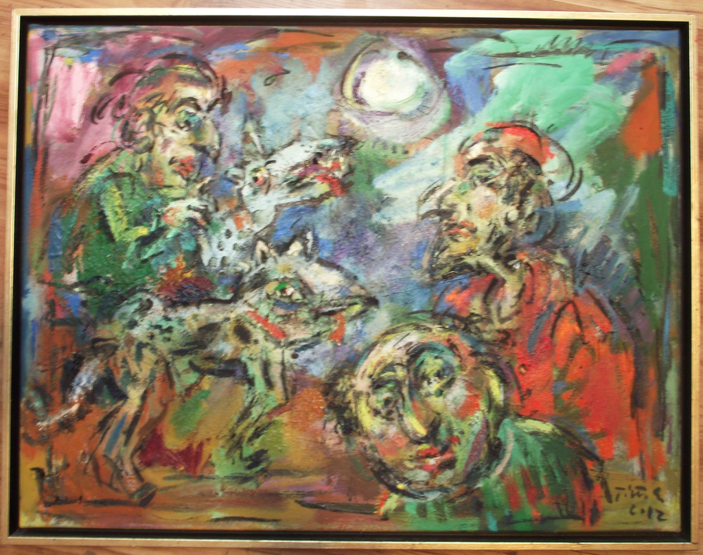 Animals have very important roles in Ernő Tóth's paintings. The singing bird in the Prodigal Son symbolises the joy over getting back to the right path. Whereas, the sympathising dog with a bent head does not only represent faithfulness and devotion, but also shows the painter's experience about and love for his hounds, that he is so proud of. (Please forgive my telling intimate details about you, but it is so characteristic of Ernő Tóth, that he regularly goes hunting with his dogs, but he never takes a gun in his hand.)