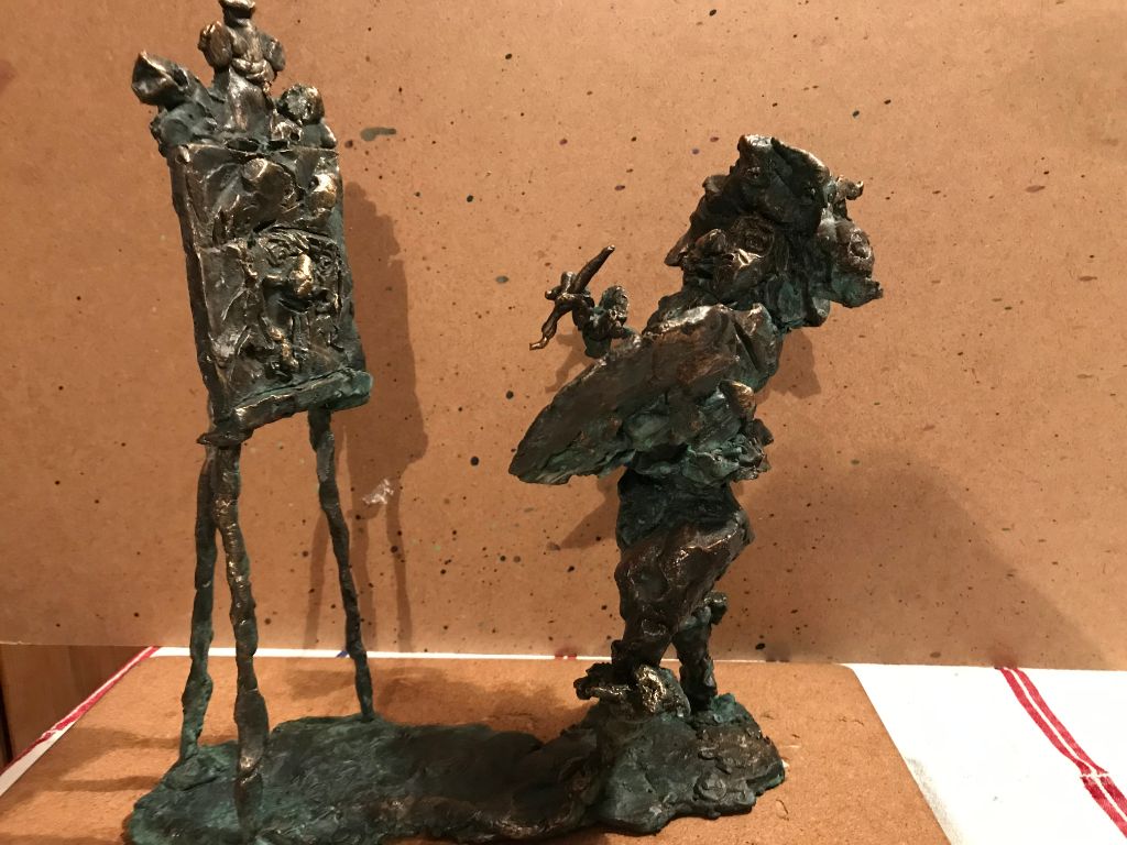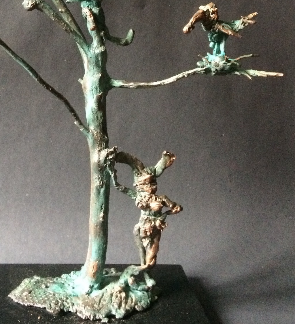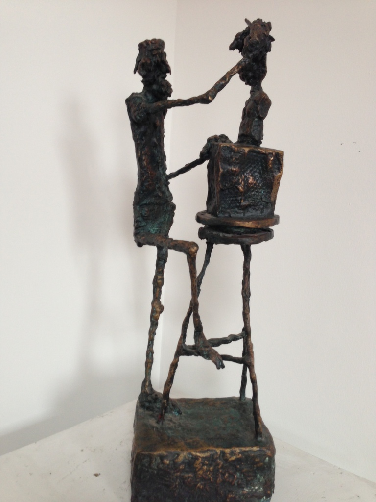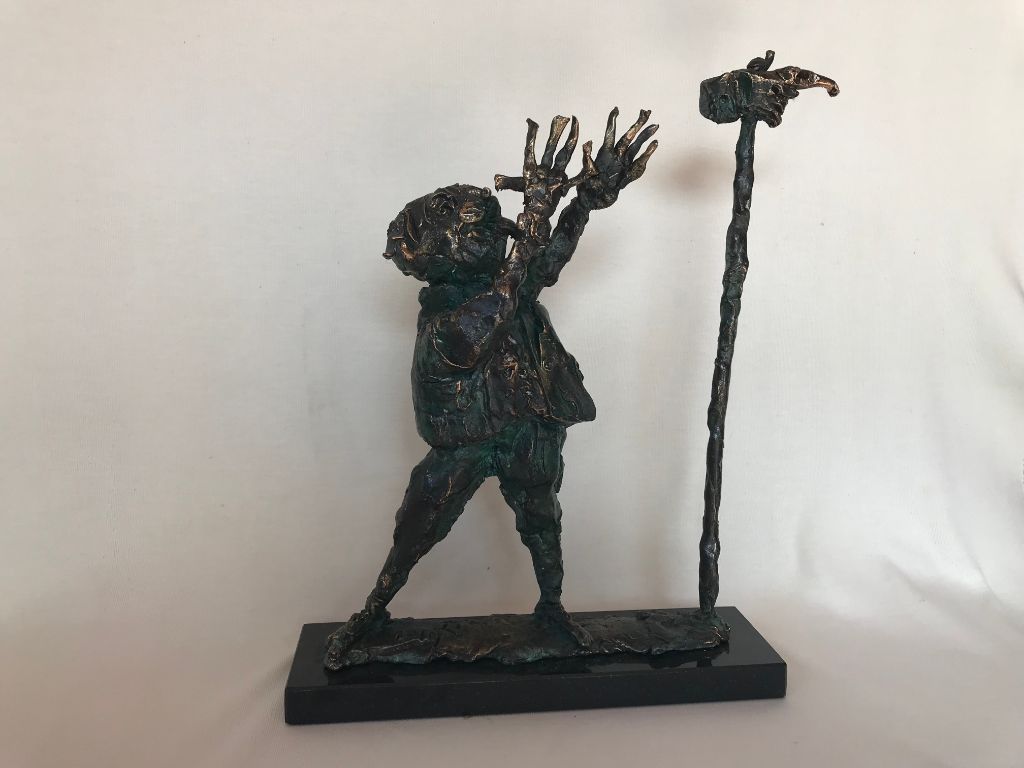 The caricature figures guard their seriousness and sublimity with fine simplicity. They are the players in the whirling fictive drama, which is brought to life by the bronze sculptures. The various, odd forms, devoid of all conformity, are rich and inventively shot through with contour effects, the scabrous surfaces inducing sculptures saturated with anxiety, tension and excitement.